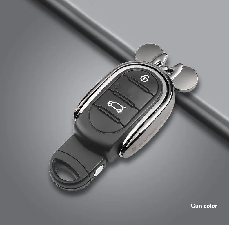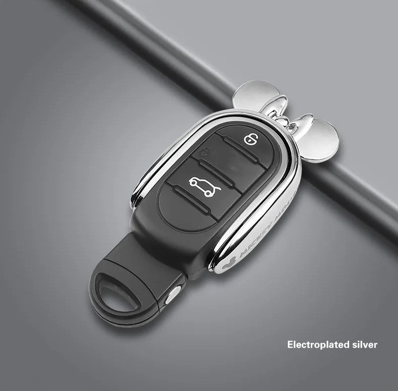 Introducing the Metal Mickey Key Case! Crafted with durable metal, this key case is the perfect accessory for your MINI F series. Keep your keys organized and easily identifiable with its sleek silver design. Upgrade your key game with this high-quality, stylish product.